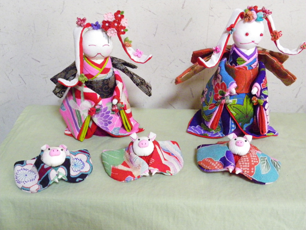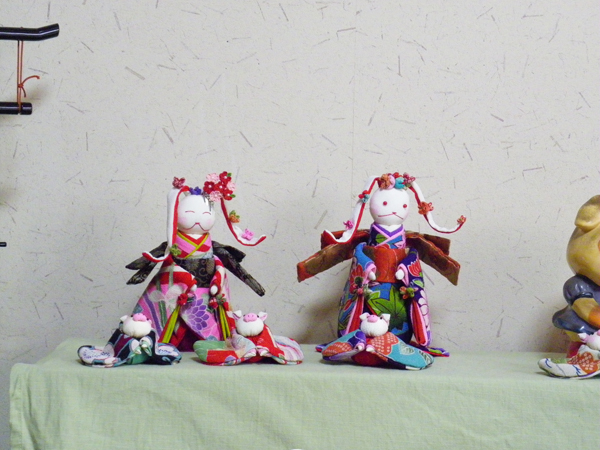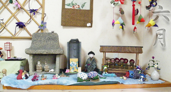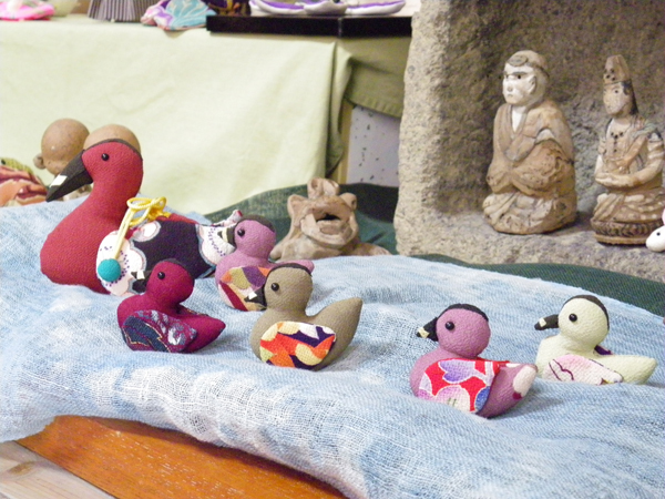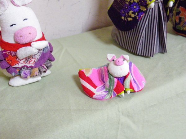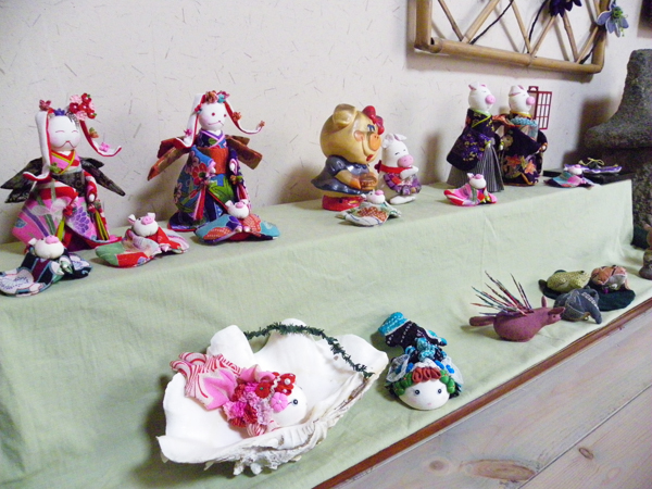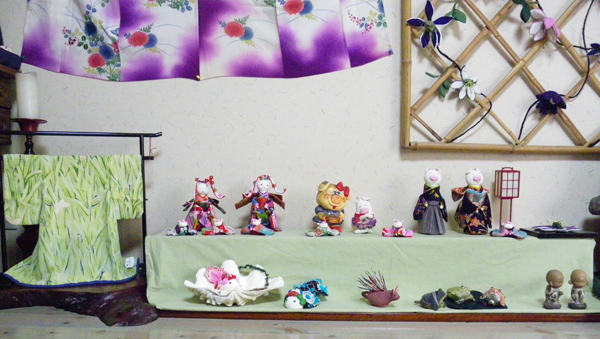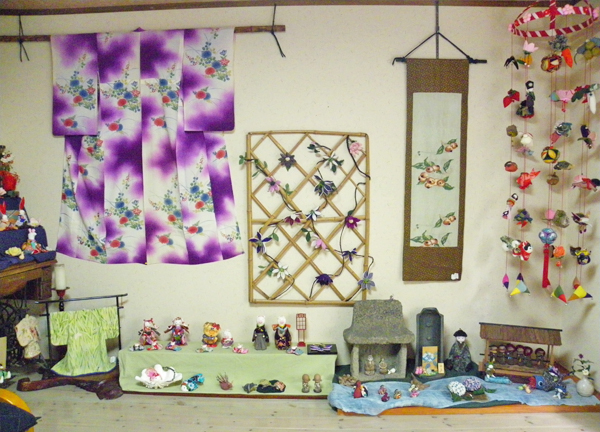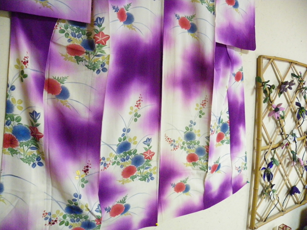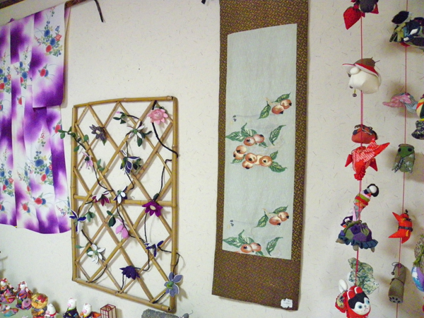 店内風景 アザミの花が描かれた単衣のミニ着物です。