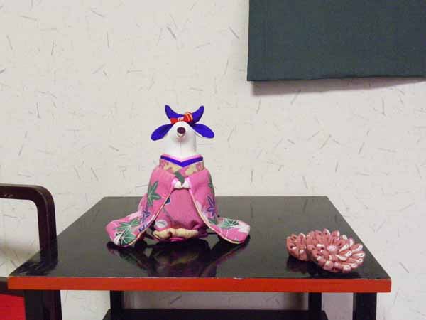 店内風景 木目込み人形の十二支は草加さんの作品です。すべて江戸縮緬で作っています。