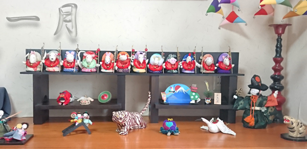 2022年1月ギャラリー ギャラリーには今年の干支のとらがずらりと並んでいます