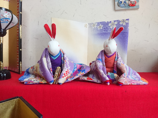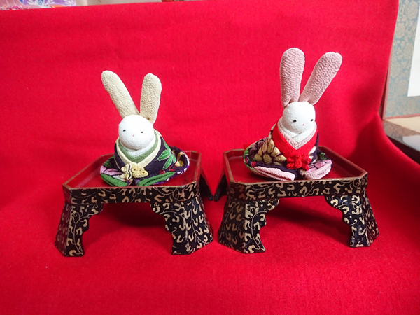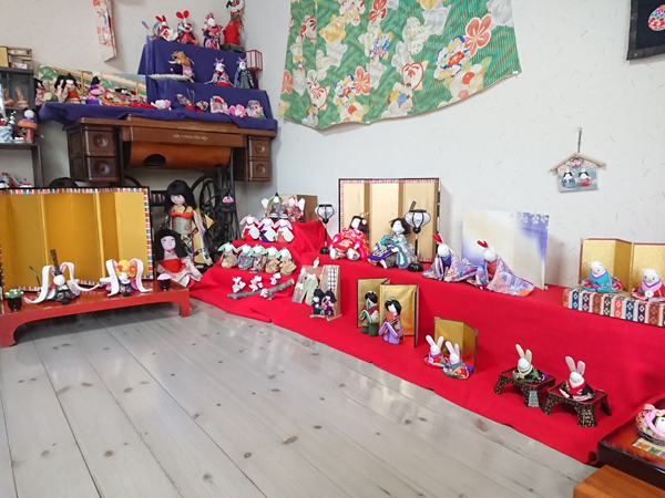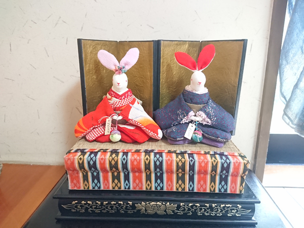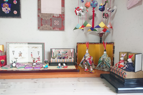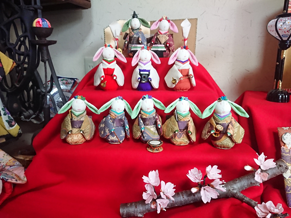 店内風景 ところ狭しと並ぶお雛様。やはりうさぎが多いですね!