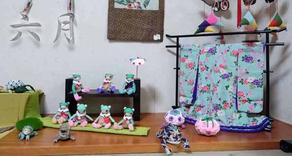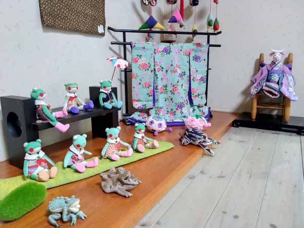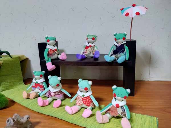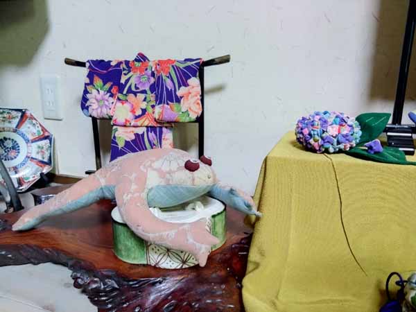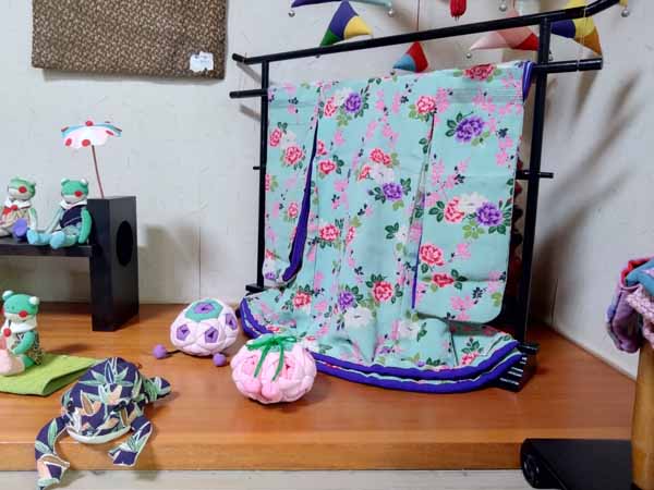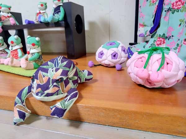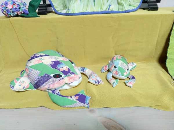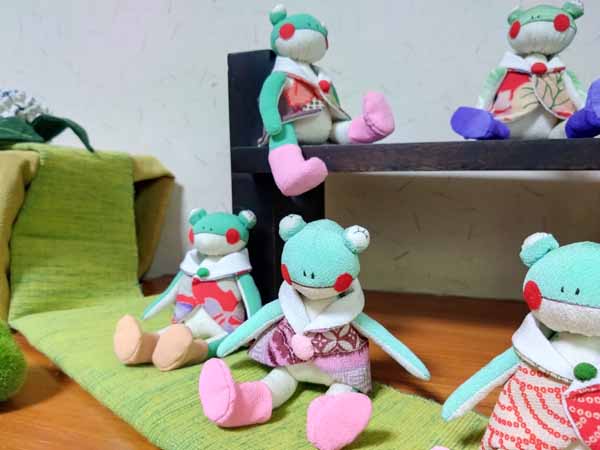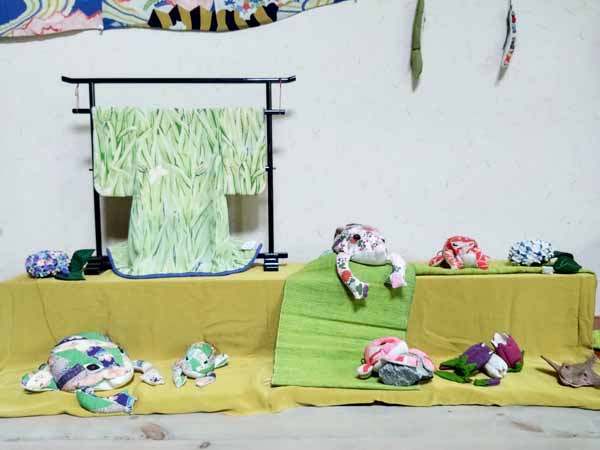今まで集めた着物で、その柄と色合いから様々な作品や可愛い動物達に出会えました。