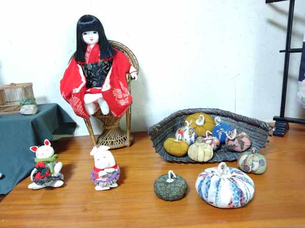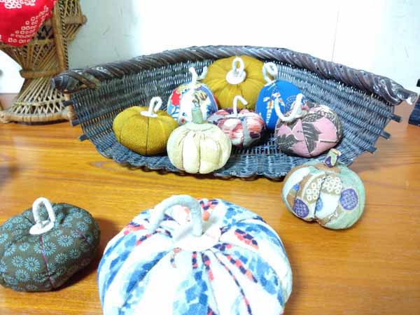 店内風景 かぼちゃの柄も色とりどりでとっても可愛いです。