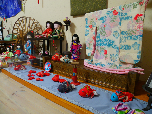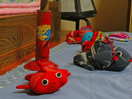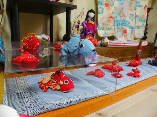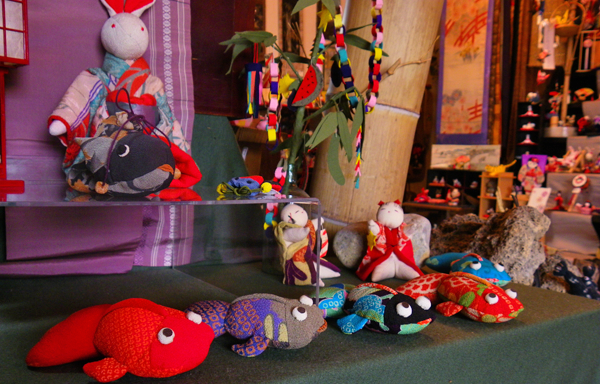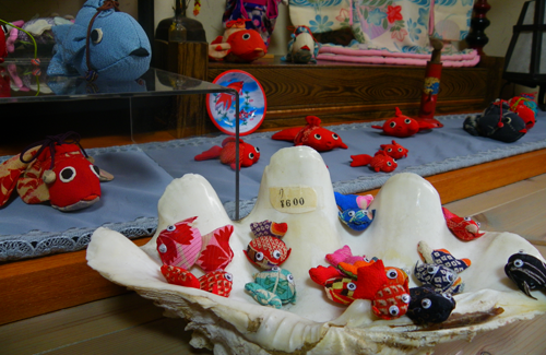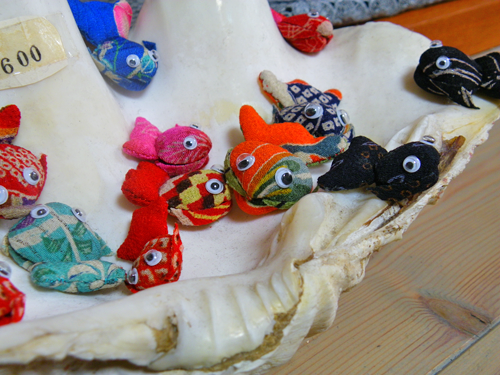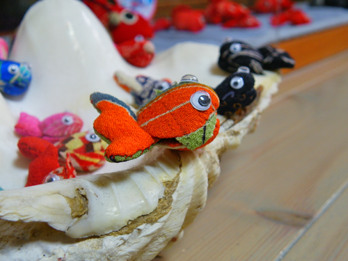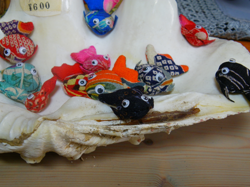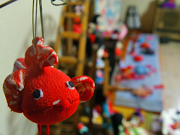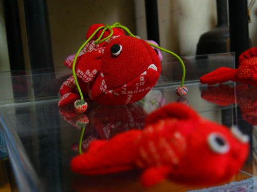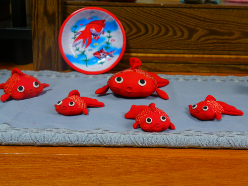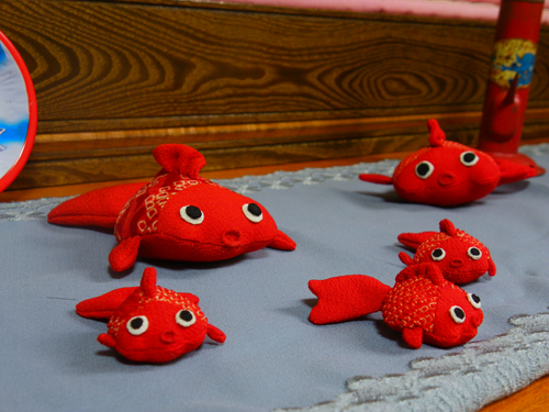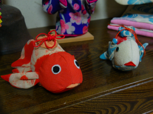 古い布や綺麗な布で作った『昔金魚』ぺちゃんこの体系と愛くるしい表情が何とも云えませんね。