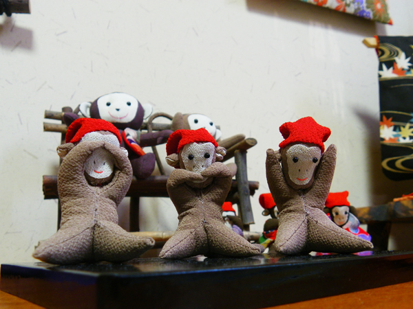 「見猿・聞か猿・言わ猿」とっても可愛く作れました。素直に育ってね…!(画像をクリックしてご覧下さい。)