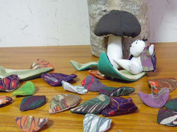柄合わせの落ち葉や、葉っぱ模様をそのまま落ち葉に!秋を感じられるギャラリーになりました。