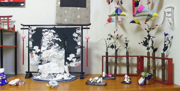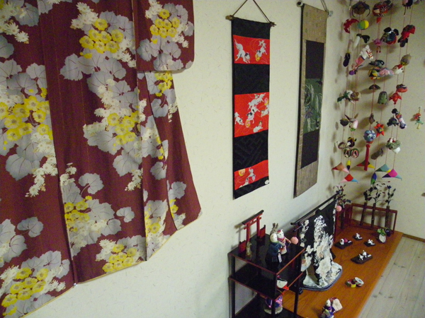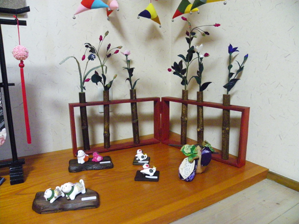 槇田さんはお花に凝っています。花屏風に活けてみました。ギャラリーが華やかになりますね。