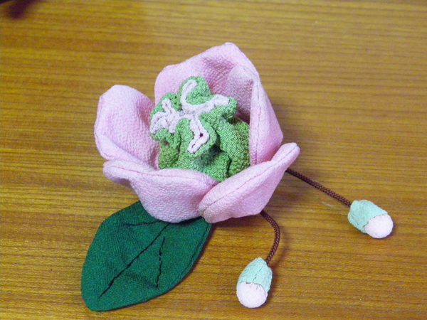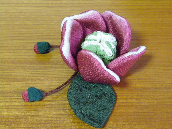 今まで作ってきた椿の花芯を変えて新たな椿を作ってみました。(画像をクリックすると大きくなりますので、ご覧下さい。)