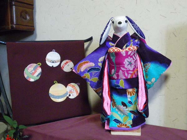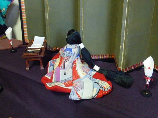十二単を纏った人形。良い柄の縮緬で華やかに仕上がってます!