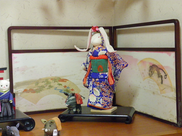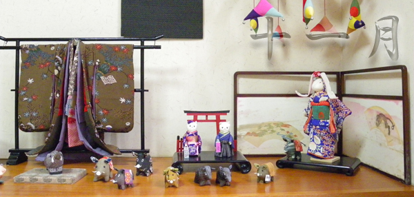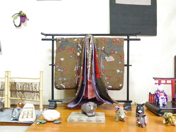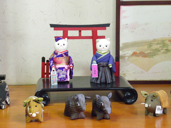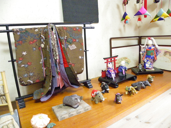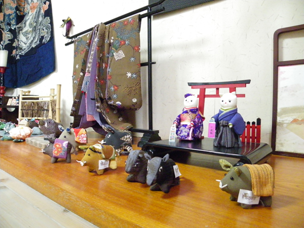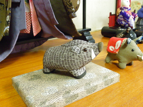 店内風景 草加さんが作った木目込み人形の「いのしし」です。