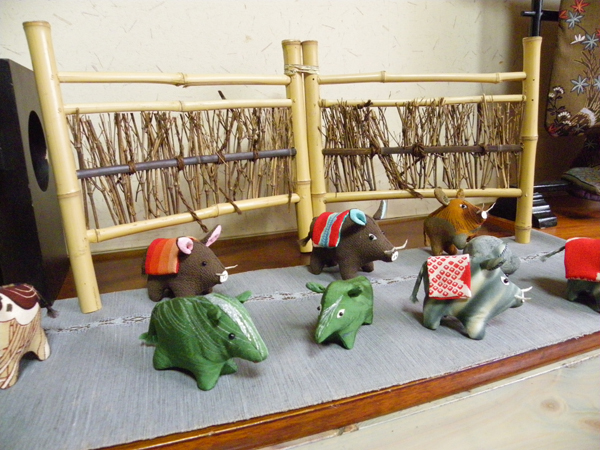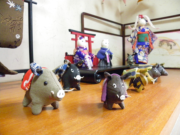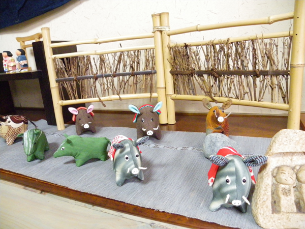 店内風景 来年の干支の「いのしし」をたくさん作ってみました。仲間が多い方が楽しいでしょう。