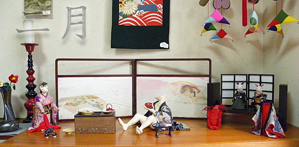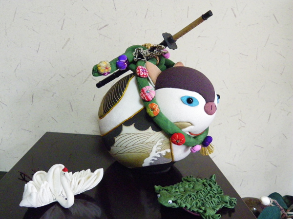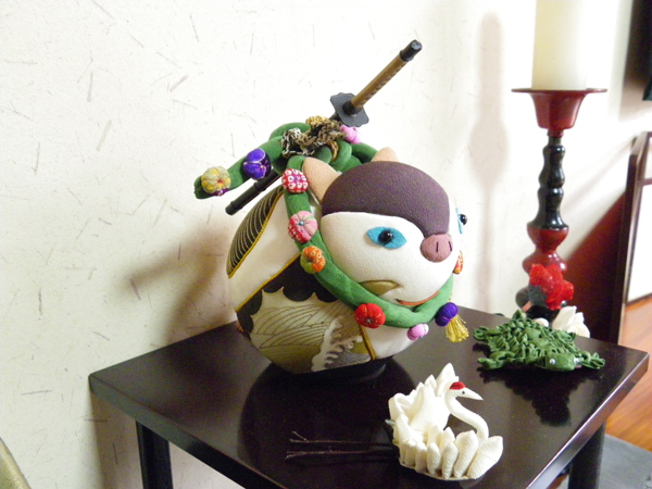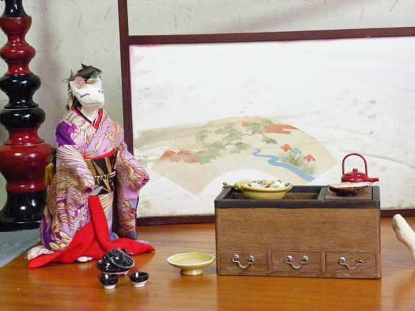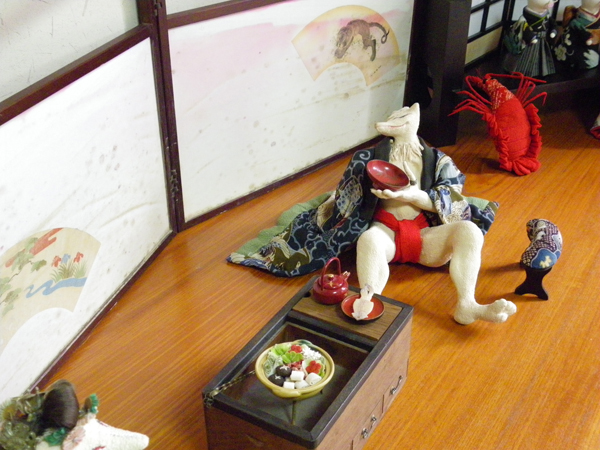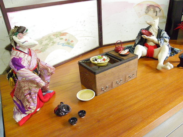 (牝ぎつねの前の酒器セットは鹿児島県の黒さつまです)